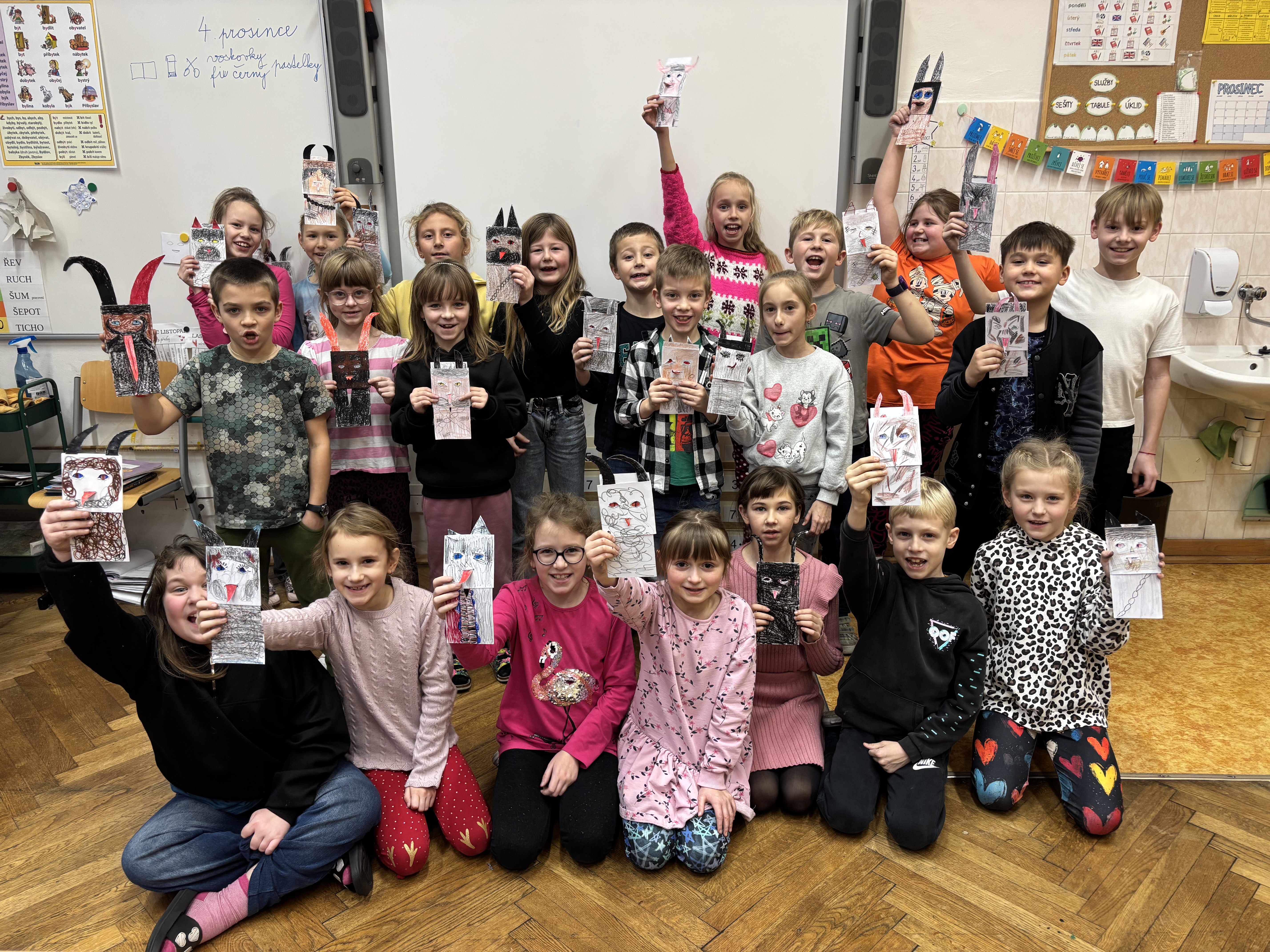 V pátek 5.12. nás navštívil Mikuláš a čerti. Přivítali jsme ho básničkou od Jiřího Žáčka Hymna čerchmantů a na čerty jsme si připravili posilu.