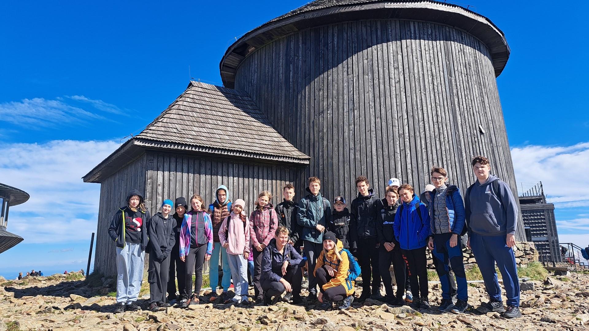 Ve čtvrtek 11. září jsme za krásného slunečného počasí podnikli v rámci zeměpisné exkurze výšlap na naši nejvyšší horu Sněžku. Výlet se nám velmi vydařil, na vrchol jsme s větší či menší námahou úspěšně vystoupali všichni a naskytl se nám krásný výhled do okolní krajiny. Těšíme se na další takto příjemné společné zážitky mimo školní lavice.